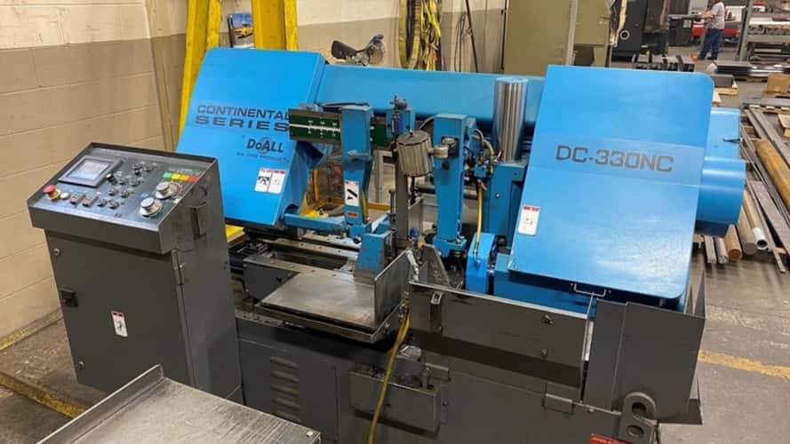 The DoALL Saws DC-330NC is a high-performance automatic horizontal bandsaw designed for precision production cutting.