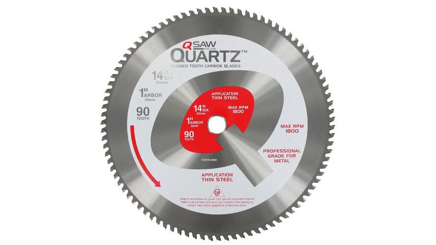 This QSaw 14" x 1" x 90 Tooth blade is designed to cut Thin Steel and has the following features: