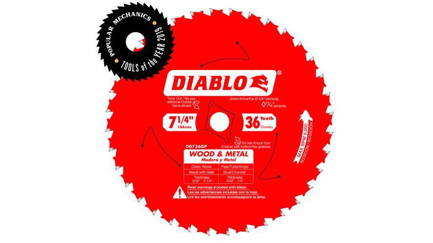 - Specially formulated Diablo TiCo Carbide withstands impact, reduces wear and lasts longer in wood and metal cutting applications