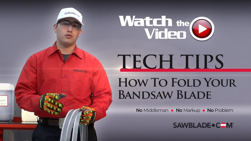 Coiling and uncoiling bandsaw blades need to be done safely and correctly. Here is a simple step-by-step video to show you "proper blade folding and unfolding". Always remember to wear gloves and eye protection when handling blades, in addition to keeping others at a safe distance when coiling or moving blades